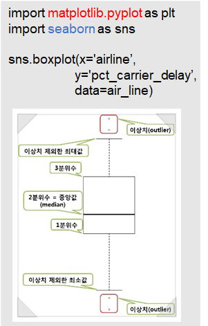 상자그림 : 범주형 변수에 따라 분류된 수치형 변수의 분포를 시각화