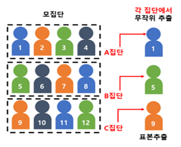 모집단을 층으로 나눈 뒤, 각 층에서 무작위로 표본 추출