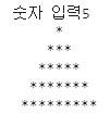 n = int(input('숫자 입력')) for i in range(n): for j in range(n-i): print(" ", end='') for j in range(i+1): print("*", end='') for j in range(i): print("*", end='') print()