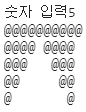 n = int(input('숫자 입력')) for i in range(n): for k in range(n-i): print("@", end = '') for j in range(i*2 - 1): print(" ", end = '') for j in range(n-i): print("@", end = '') print()