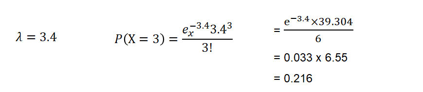 •Ex) 한 주에 고장 나는 횟수의 평균값이 3.4인 팝콘 기계가 있다. 기계가 3번 고장 날 확률?