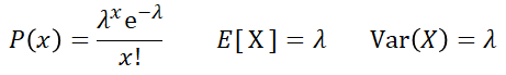 •푸아송 분포 : 단위시간, 단위 공간에 어떤 사건이 몇 번 발생할 것인가를 표현하는 이산확률분포