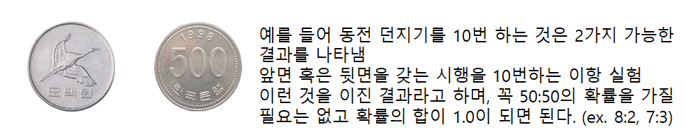 독립된 결과를 가져오는 하나의 사건(예: 동전던지기)
