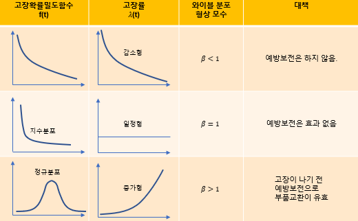 수명(고장시간)분포의 확률밀도함수