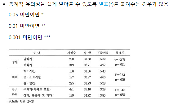 P값은 정해진 유의수준(5%, 1%) 보다 작을수록 좋다.