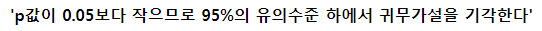 대립가설이 거짓이라면 귀무가설을 채택한다 라고 결론을 낸다.