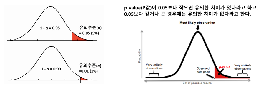 P값은 정해진 유의수준(5%, 1%) 보다 작을수록 좋다.