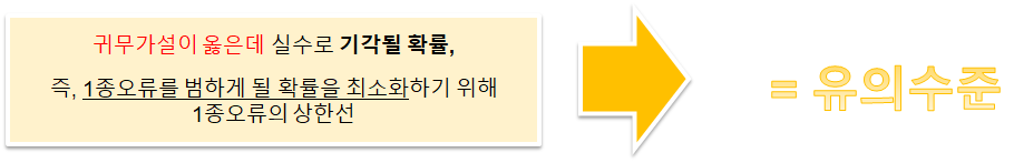 귀무가설이 사실인데 기각시 = 1종 오류
