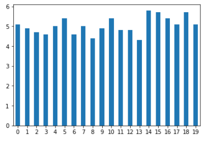 # columns 열%matplotlib inline import seaborn as sns import matplotlib.pyplot as plt iris = sns.load_dataset('iris') iris.sepal_length[:20].plot(kind='bar', rot=0) # rot = 글씨 rotate plt.show()