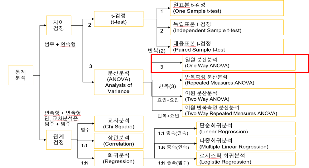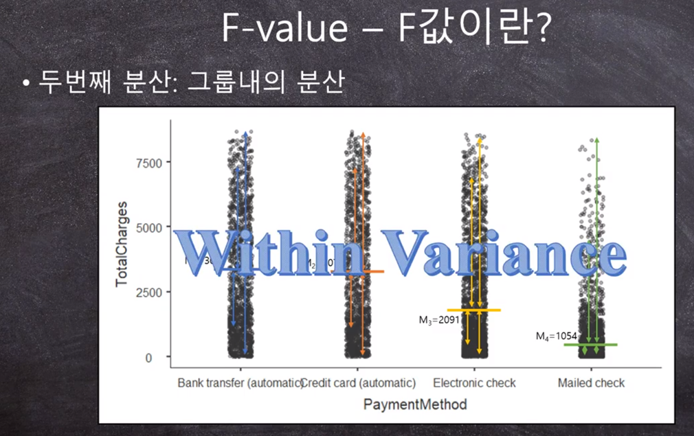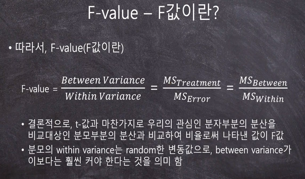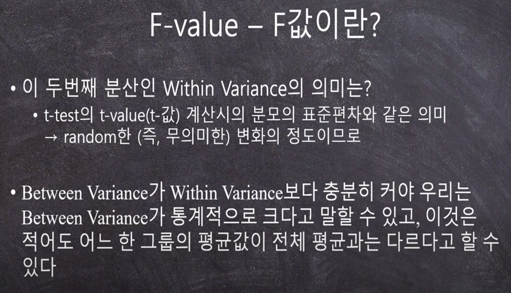Between Variance가 크다는 건 어느 한 그룹이 각 그룹의 평균값과 다르다는 것을 알 수 있다.
