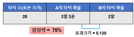 검정력 : 대립가설이 사실일 때, 이를 사실로서 결정할 확률