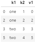 data.drop_duplicates(['k1','k2']) # 포인터에 의해서 전달하기 때문에 list 형태로 전달함