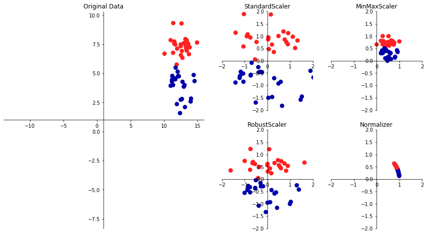 %matplotlib inline import mglearn import matplotlib.pyplot as plt mglearn.plots.plot_scaling()정규화