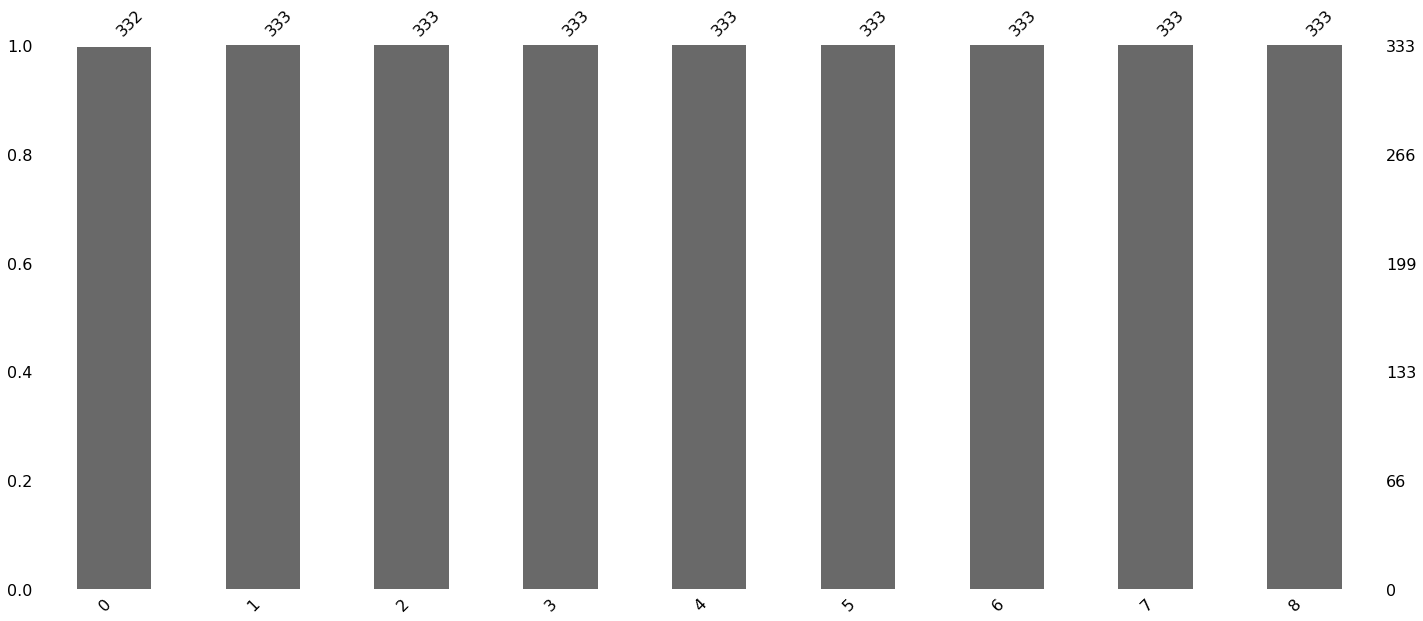 msno.bar(df) # na의 존재를 시각화해서 확인 plt.show()