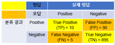 •기계학습에서 모델이나 패턴의 분류 성능 평가에 사용되는 지표.