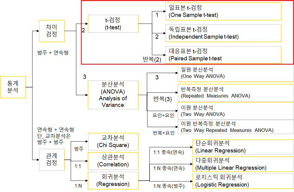 표본으로부터 측정된 분산이나 표준편차를 이용하여 두 모집단의 평균의 차이를 알아보는 검정 방법