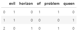 # Text mining -> vectorizing sample = ['problem of evil', 'evil queen', 'horizon problem']