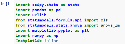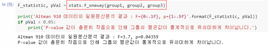 파이썬에서 One-way ANOVA 분석은 scipy.stats이나 statsmodel 라이브러리를 이용해서 할 수 있습니다.