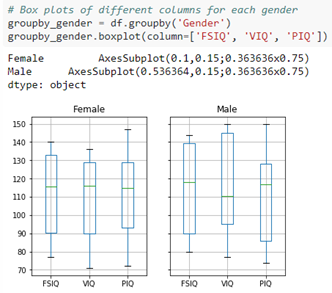 성별과 VIQ 수치의 관계