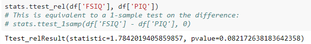 각각의 FSIQ와 PIQ값은 같은 개인에서 측정되었기 때문에,