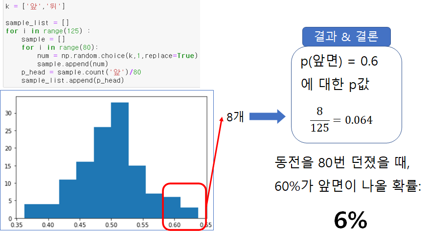 1개 표본 : 동전을 80번 돌렸을 때 앞면이 나올 확률