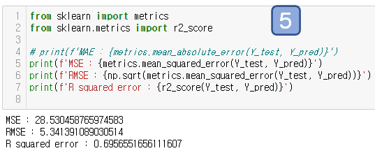 여기서 결과값으로 나온 coef_는 계수(coefficient) 즉 기울기 입니다.