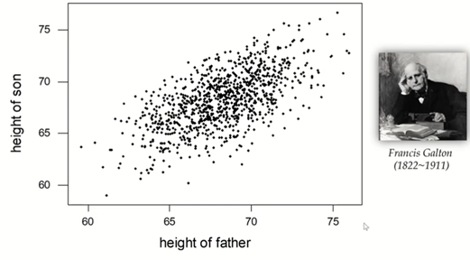아들의 키와 아버지 키의 점그래프(scatter plot)