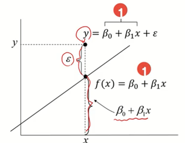 x 변수와 오차항이 Y를 표현 (오차항 있음)