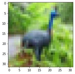 # airplane, automobile, bird ,cat , deer, dog, # frod, horse, ship, truck 10개로 분류 from tensorflow.keras.datasets import cifar10 from tensorflow.keras.optimizers import SGD, Adam, RMSprop from tensorflow.keras.utils import to_categorical (X_train, y_train) , (X_test, y_test) = cifar10.load_data() print("X_train shape : ", X_train.shape) print(X_train.shape[0], 'Train samples') print(X_test.shape[0], 'Test samples') nb_classes = 10 y_train = to_categorical(y_train, nb_classes) y_test = to_categorical(y_test, nb_classes) X_train = X_train.astype('float32') X_test = X_test.astype('float32') X_train /= 255 X_test /= 255 plt.imshow(X_train[5]) plt.grid(False) plt.show() plt.imshow(X_train[6]) plt.grid(False) plt.show()