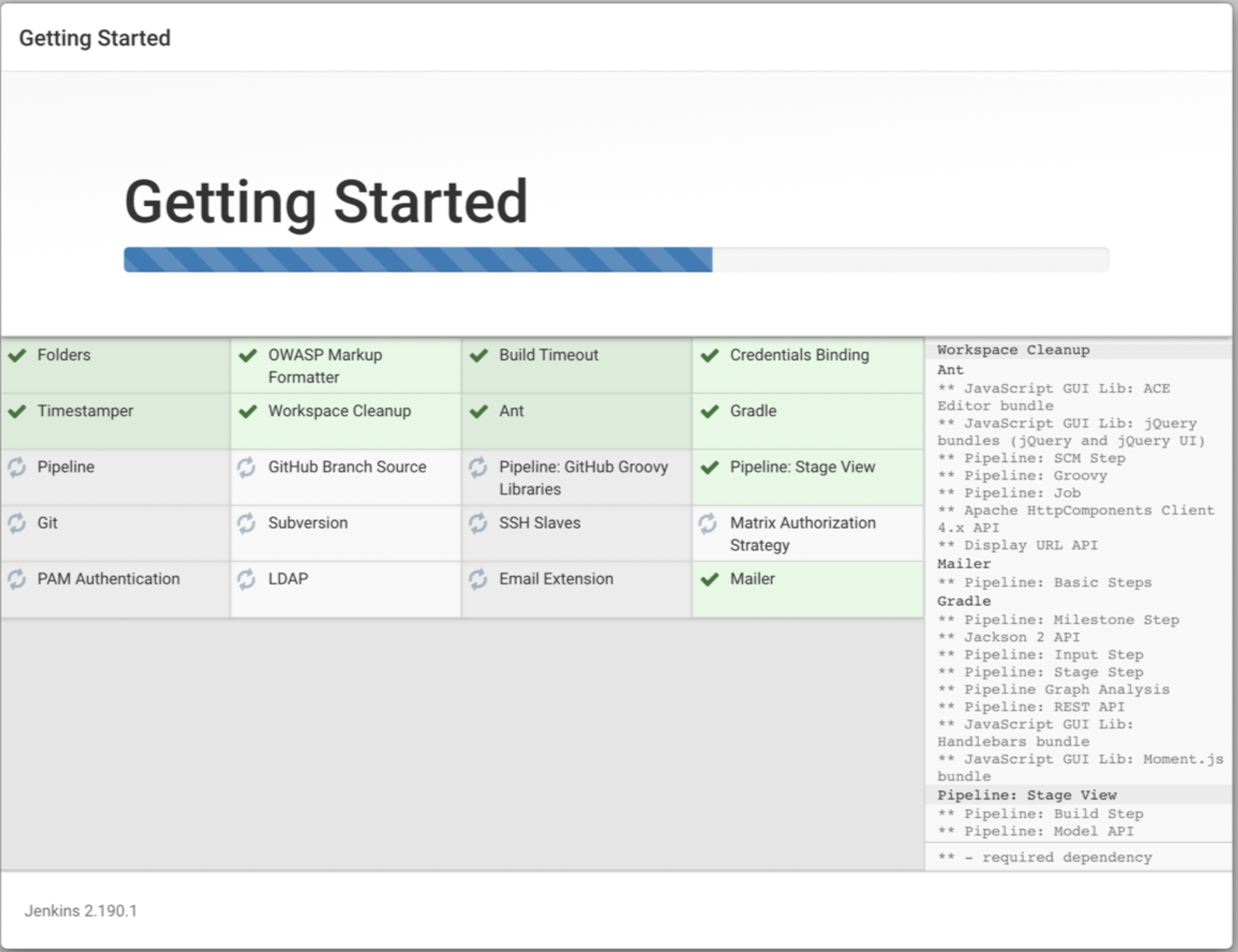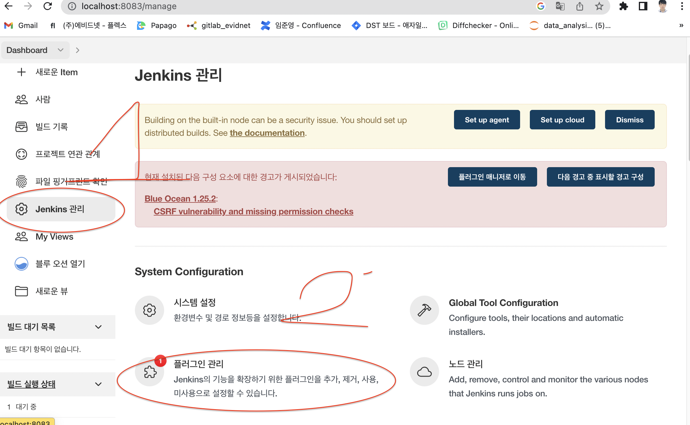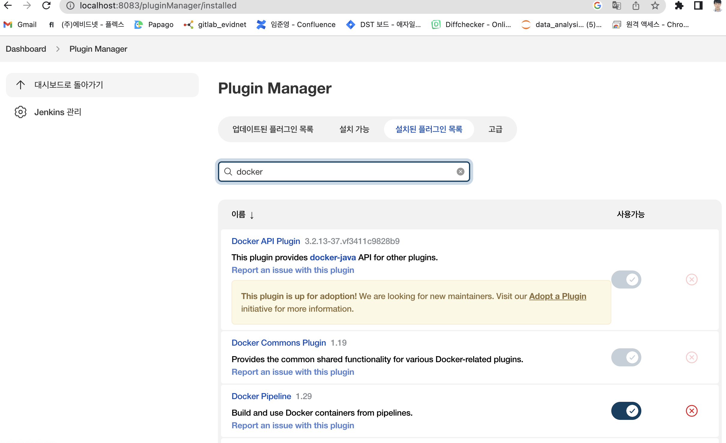 이후에 jenkins에서 사용하는 플러그인을 설치하라는 내용이 나옵니다.
