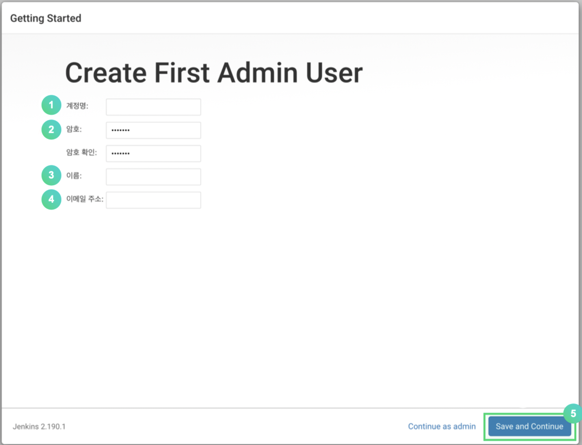 이후 admin 계정을 생성합니다.