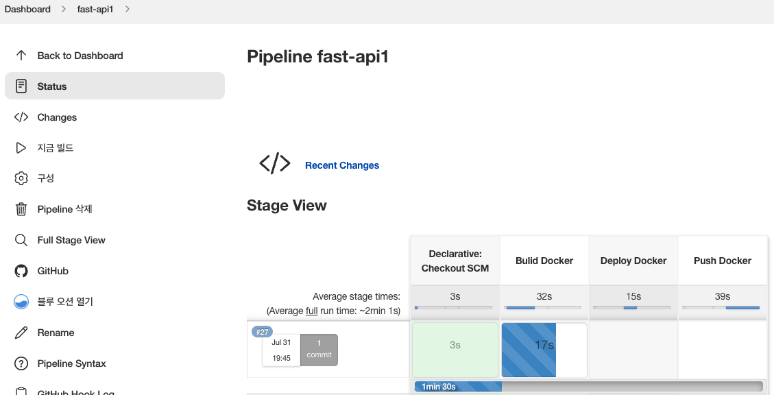 실행 중인 pipeline 모습입니다.