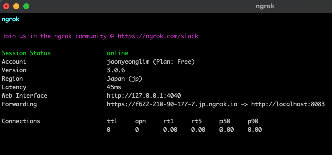 하지만 우리는 로컬에서 사용해볼 것이기 때문에 ngrok를 사용해서 진행해보겠습니다.