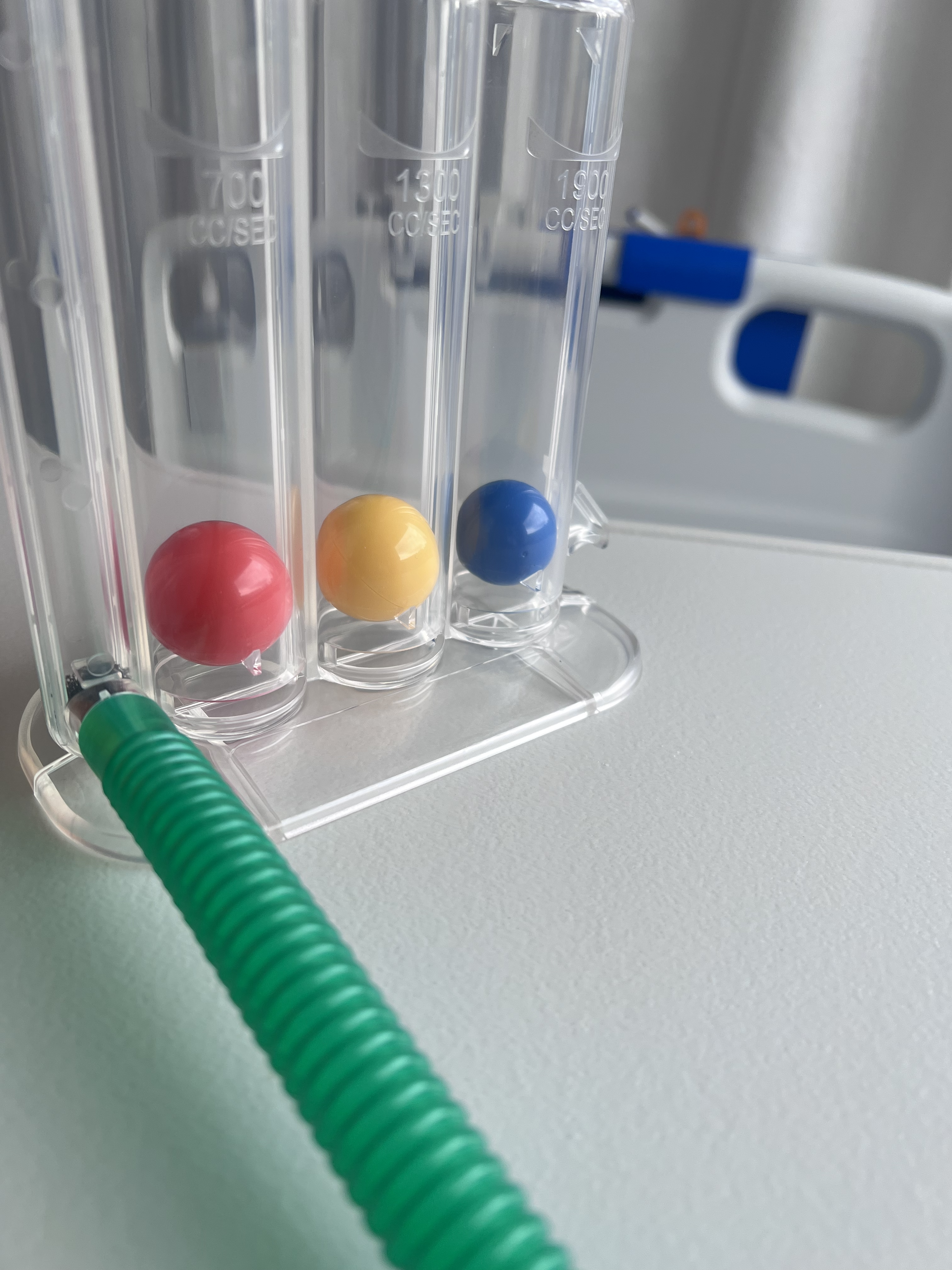 호흡기 회복을 도와주는 도구 말린 폐를 펴주기 위해서 숨을 크게 들여 마시는 것을 반복하라고 하셨다.